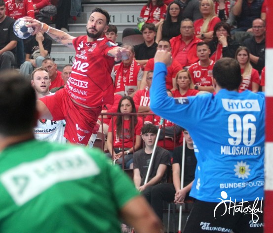 Hesham óriási kapufával köszönt Milosavljevnek, de hiába volt a labda pillanatok alatt szélen, Jarl Mikael szélről is védett, az ebben az időszakban egészen parádésan végigvitt kontránkkal pedig Cindric sétált be. Hesham második próbálkozásra már betalált, de ismét ott termett a középkezdés utáni pillanatokban a berlini ziccer a szélen, és másodszorra a feröeri szélső, Av Teigum sem hibázta el. A Berlin egészen gyorsan kivitte támadásainak befejezéseit szélre, és bár mi is próbálkoztunk ezzel, ismét annyi ziccert hagytak ki a szélek, hogy ilyet nem lehet büntetlenül egy Bundesliga-csapat ellen. A kétgólos előnyünknek búcsút intettünk egy perc alatt, és a 8. perctől kezdve igazából a vendégek diktálták az iramot ezen a meccsen.